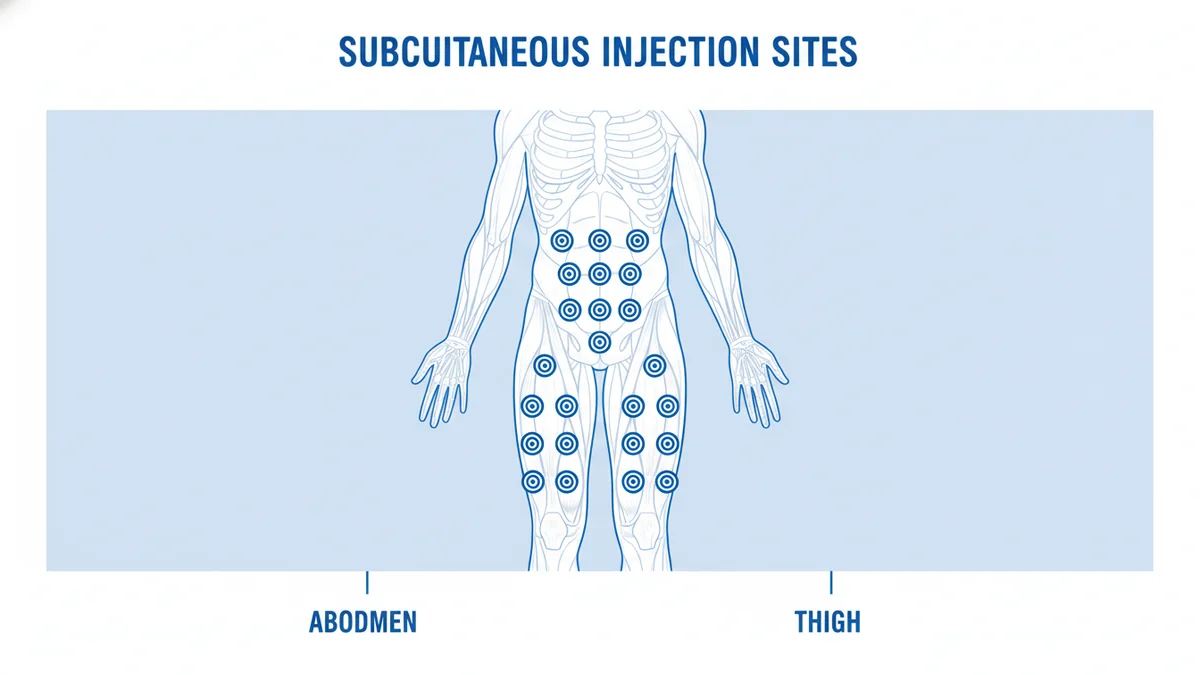 Najlepsze miejsca do iniekcji podskórnych to obszary z dostateczną ilością tkanki tłuszczowej, z dala od dużych naczyń i nerwów.